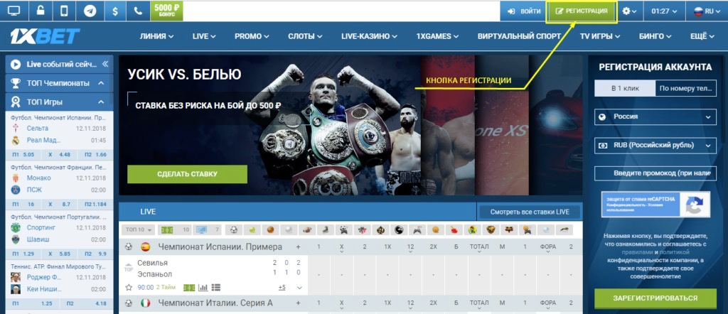 Если вы заинтересованы в том, чтобы делать ставки на спорт из 50+ видов дисциплин и киберспорт (CS:GO, Dota 2, League of Legends) на портале 1xBet, то вам первым делом следует пройти быструю регистрацию на ресурсе за 30 секунд. Далее необходимо внести деньги на свой аккаунт от минимальной суммы 100 рублей. Без пополнения баланса невозможно размещать ставки на спортивные дисциплины и получать выигрыши.