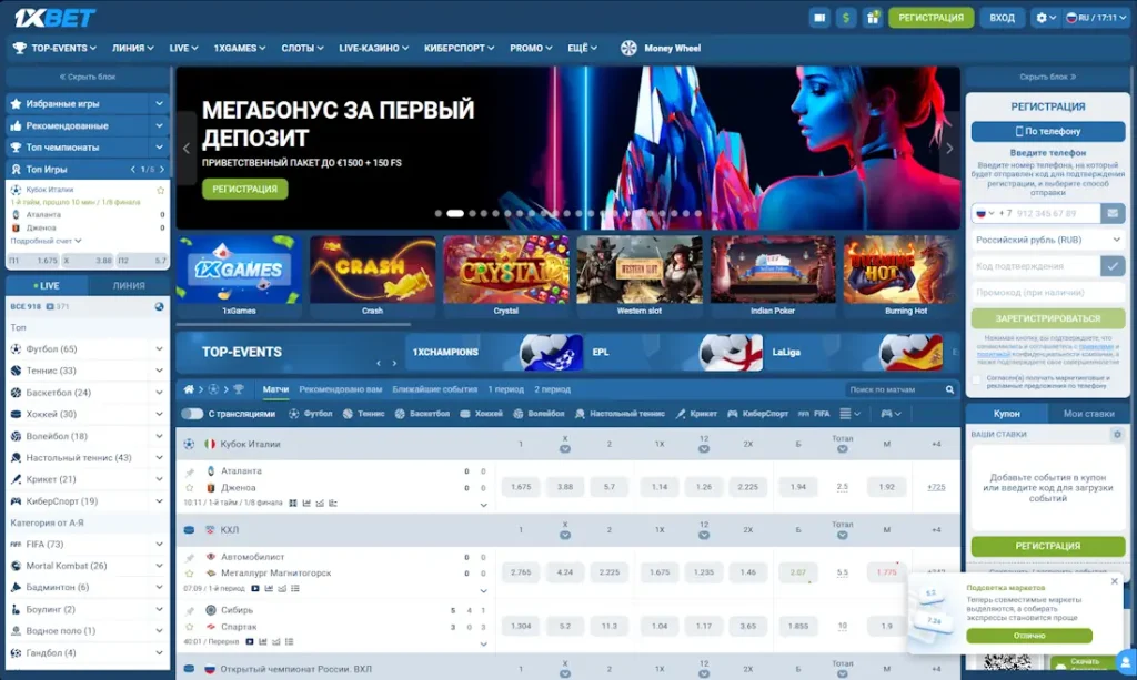 1xBet — международная платформа с лицензией Curacao, работает в 50+ странах. Преимущества: нет налога 13% с выигрышей, казино 6000+ слотов, live-игры с дилерами, ТВ-игры, более 200 способов пополнения счёта, высокие коэффициенты (маржа 4-7%).